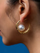 Handcrafted in a golden-hour hue, these textured baroque pearl hoops feature intricate detailing and a luminous pearl that adds depth and elegance. Their ear-hugging design feels dainty yet boldly inspired by nature’s artistry.