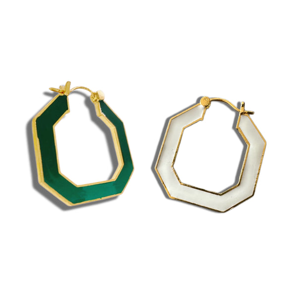 Where fashion meets innovation. These hoop earrings are a testament to versatility; they are designed to be worn on both sides, offering you two stunning looks in one pair. Crafted with precision and adorned with vibrant enamel, these hoops are more than accessories; they are expressions of your dynamic style and ever-changing moods.